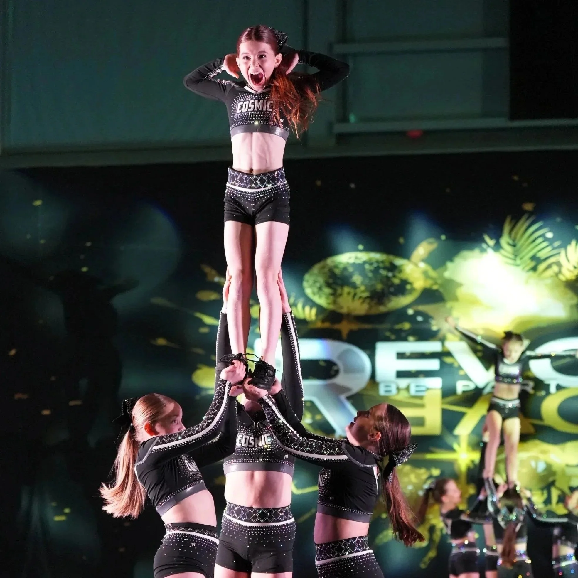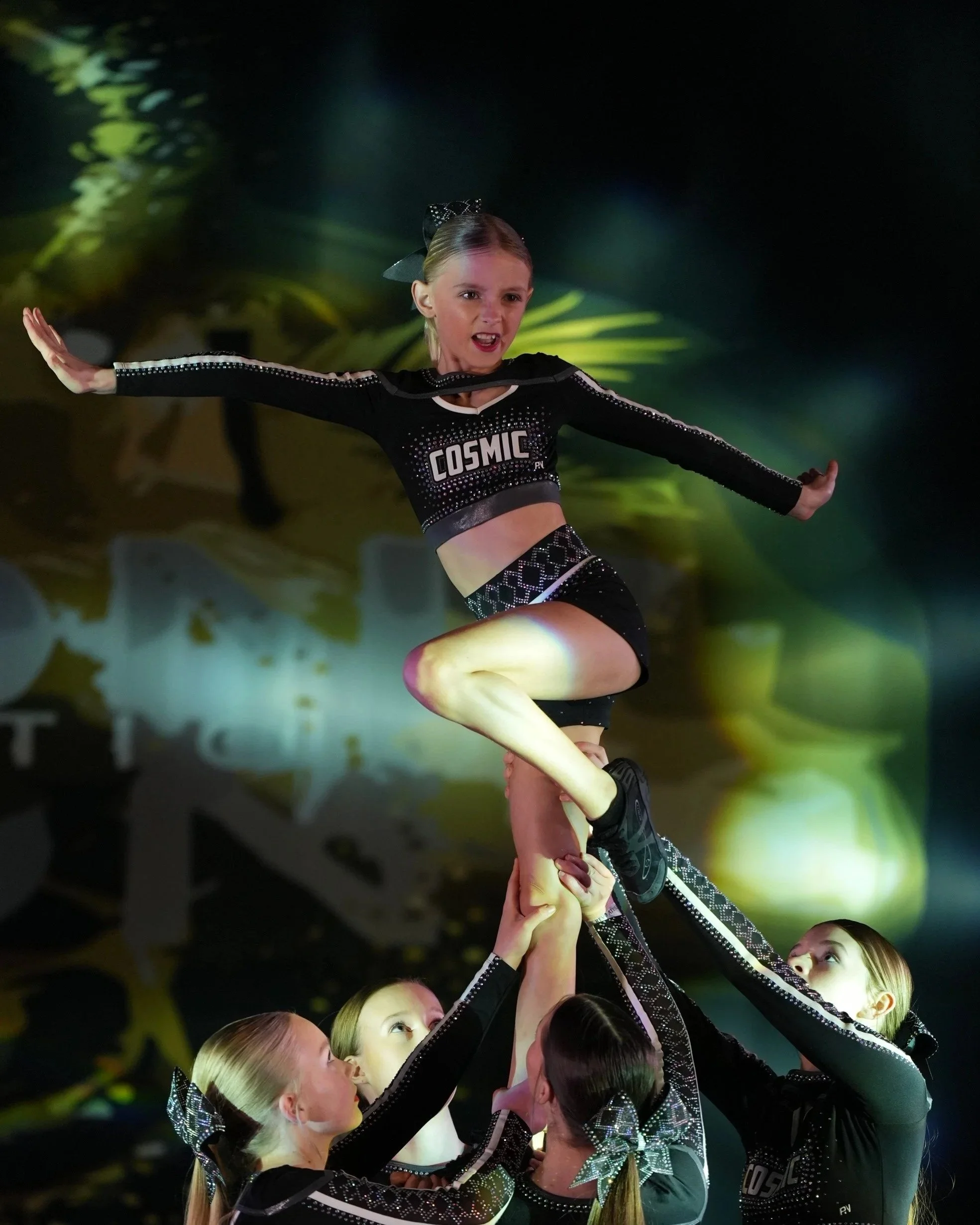 At Cosmic, weβre passionate about skill development, teamwork, leadership, and communication, helping every athlete grow on and off the cheer floor. Most importantly, we focus on happiness and creating unforgettable memories as a team, whether itβs learning a new skill, performing a routine, or traveling for competition.